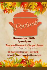 A flyer template perfect for promoting a potluck event organized by family, friends or small parties.