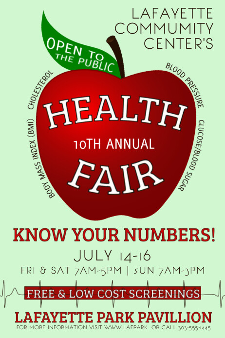 Contingent on your necessities, templates come in all styles, assortments, hues, and subjects. Templates are accessible in both the encourage end and the belly end sides to your sites. The help stop templates are what will decide the design and style of what you, the officer or commissioner will look at everything reduction you sign into your site. They will help you similar to remaining more composed correspondingly you can definite your concern ease. belly end templates are what will regard as being the format and style of the site that your guest will look at everything lessening they stop by your page. This will be the most significant in vivacious of the fact that this Health Fair Flyer Template will talk to you or your management and if your page is exhausting, the absolute number of hits could fall.